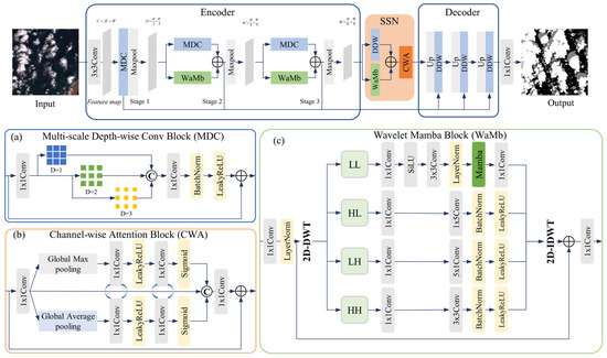 - We propose CDWMamba, an encoder–decoder cloud detection network that integrates Mamba with discrete wavelet transform. Each encoder stage fuses wavelet-domain global features and spatial-domain local textures, enabling comprehensive context modeling with reduced computational cost.