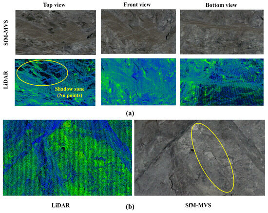 Unlike the validation described in Section 3.1 or Section 3.2, obtaining a reference model for the tunnel face was not feasible due to time limitations. Instead, we compared the point clouds generated by both methods using quantitative indices such as point resolution and idealistic accuracy, and qualitative indices like joint expression capability. The results of these comparisons are presented in Section 4.2.