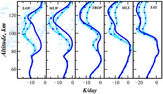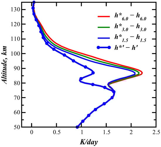 - Kutepov, A.A.; Feofilov, A.G.; Medvedev, A.S.; Berger, U.; Kaufmann, M.; Pauldrach, A.W.A. Infra-red Radiative Cooling/Heating of the Mesosphere and Lower Thermosphere Due to the Small-Scale Temperature Fluctuations Associated with Gravity Waves. In Climate and Weather of the Sun-Earth System (CAWSES): Highlights from a Priority Program; Lübken, F.J., Ed.; Springer: Dordrecht, The Netherlands, 2013; pp. 429–442. [Google Scholar] [CrossRef]