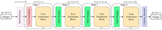Similarly to ViT, images entering the Swin Transformer are first divided into chunks using the patch partition structure and flattened along the channel dimension. These feature maps are then processed through four stages to extract feature information. In the first stage, each chunk undergoes a linear transformation before being fed into two consecutive Swin Transformer blocks. In the subsequent stages, to further extract features and reduce the size of the feature maps, the feature maps are downsampled using patch merging before being fed into the next Swin Transformer block.