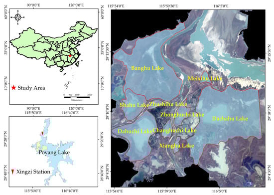- Lin, Y.L.; Li, X.H.; Tan, Z.Q.; Song, Y.Y.; Xu, C.Y. Dynamic Characteristics of Vegetation Communities in the Floodplain Wetland of Lake Poyang Based on Spatio-Temporal Fusion of Remote Sensing Data. J. Lake Sci. 2023, 35, 1408–1422. (In Chinese) [Google Scholar]