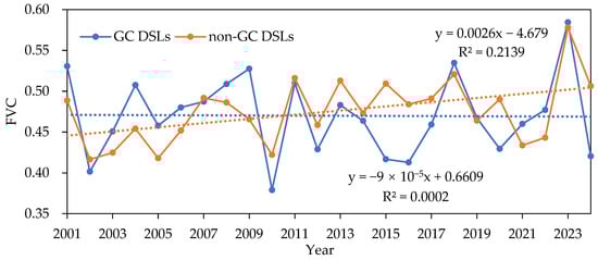 Annual average FVC trends for GC DSLs and non-GC DSLs from 2001 to 2024.