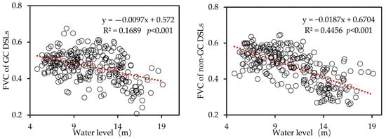 Correlation analysis between FVC of GC and non-GC DSLs and water level at the Xingzi station.
