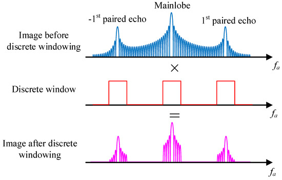 Figure 5, the basic idea of discrete windowing is to multiply the data with a series of discrete windows which have non-zero values only near the mainlobe and the paired echo peaks, and thus include the energy of the target as much as possible.