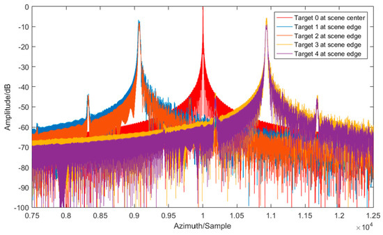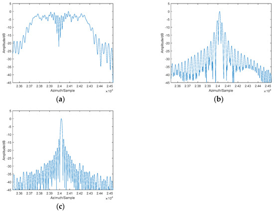 Considering the SPECAN processing in (23), and taking the widened azimuth point spread function as a whole, the azimuth image is