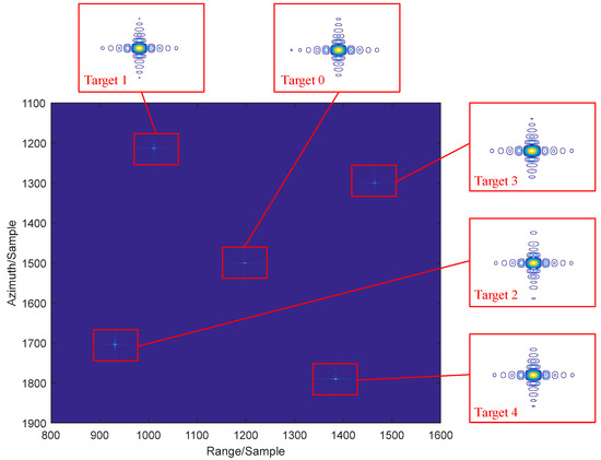 The periodic phase error caused by antenna vibration will bring extra paired echo peaks in the image, thus spreading the energy of the targets. As is shown in (20), the paired echo peaks appear in the position with azimuth displacement of integer multiples of vibration frequency from the actual mainlobe position