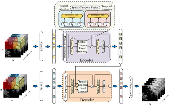 In recent years, with the advancement of artificial intelligence technologies, researchers have explored the application of deep learning to precipitation forecasting based on radar echo extrapolation. Deep learning technology can make up for the shortcomings of traditional algorithms to a certain extent and can adapt to complex and changeable environments [2]. This approach treats radar echo maps at each time step as matrices and transforms the problem into a spatiotemporal sequence prediction task by forecasting future sequences from historical observations. Convolutional neural networks (CNNs) [13,14] autonomously learn feature representations from input data through their inherent architecture, enabling the extraction of abstract semantic features at deeper layers. Consequently, Ayzel et al. [15] employed CNNs for rainfall prediction based on radar echo images, demonstrating that the model could capture the complex nature of short-term precipitation field evolution while matching the performance of state-of-the-art optical flow methods. Building upon this, Ayzel et al. [16] developed RainNet, a deep learning model integrating concepts from U-Net and SegNet families of deep learning models (which were originally designed for binary segmentation tasks, known for its efficient memory usage during upsampling) [17,18], utilizing quality-controlled weather radar data from the German Meteorological Service to predict continuous precipitation intensity. However, conventional convolutional architectures primarily focus on spatial features while neglecting temporal dependencies. Several researchers have explored recurrent neural networks [19] (RNNs), including long short-term memory networks [20] (LSTMs), gated recurrent units [21] (GRUs), and temporal convolutional networks [22] (TCNs), to analyze temporal correlations in meteorological data and capture precipitation process characteristics. Effective precipitation forecasting requires consideration of both temporal dependencies across historical and current states and spatial interactions among neighboring regions, making the identification and extraction of dynamic spatiotemporal precipitation characteristics a significant research challenge [23]. To solve this problem, Shi et al. [24,25] proposed ConvLSTM and TrajGRU to handle spatially and temporally correlated data, primarily for radar echo prediction and video forecasting. Wang et al. [26] combined RNN with CNN to develop PredRNN, whose architecture centers on a novel spatiotemporal LSTM (ST-LSTM) capable of simultaneously extracting and preserving spatial and temporal representations. However, these networks rely on RNN-based structures, and as the number of time steps increases, their ability to propagate information gradually diminishes, leading to long-range dependency issues. Furthermore, although CNNs effectively capture spatial correlations, the inherent limitations of recurrent structures in RNNs may reduce the efficiency of spatial information propagation, potentially resulting in spatial information loss.