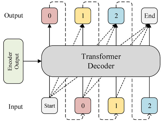 The decoding process in transformer models utilizes the output of the encoder and the predictions of the current word to generate the next word. As shown in Figure 8, the decoding process begins with a known target language sequence and generates a probability distribution through a prediction network to produce the next word. The model iteratively repeats the decoding steps to ultimately generate the complete target language sequence. Each generated word is appended to the end of the target language sequence and serves as the context for the next word generation. The decoding process terminates when the generated word matches the end-of-sequence token, and the final target language sequence is output as the result. However, due to the step-by-step decoding approach, this method suffers from prolonged dynamic decoding time and the issue of error accumulation.