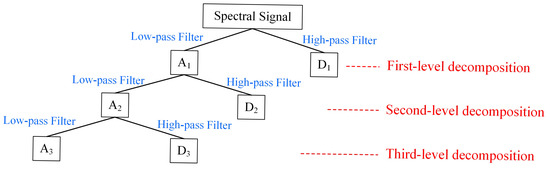 One-dimensional discrete wavelet decomposition process of spectral signals.