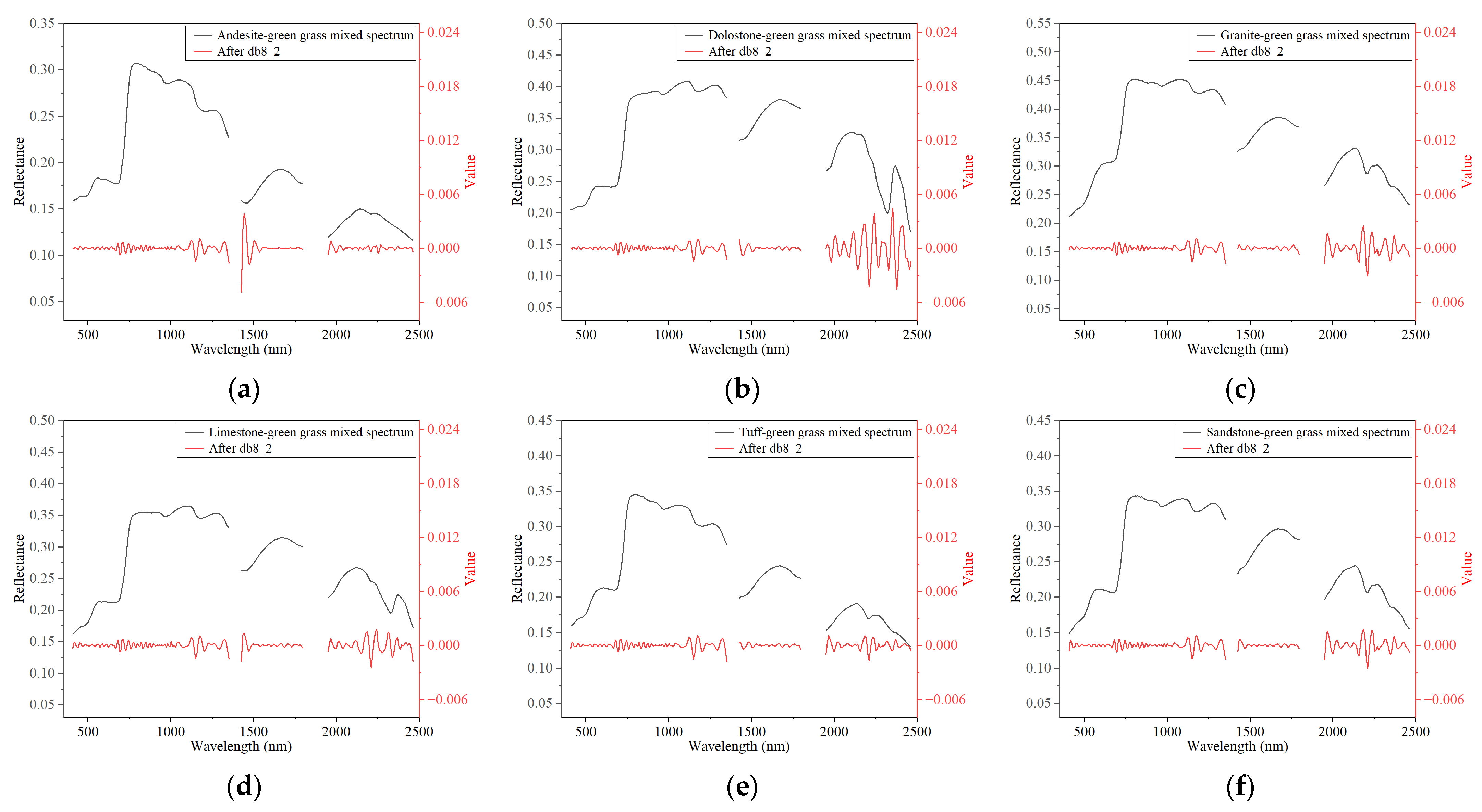 - Guo, S.; Jiang, Q. Improving rock classification with 1D discrete wavelet transform based on laboratory reflectance spectra and Gaofen-5 hyperspectral data. Remote Sens. 2023, 15, 5334. [Google Scholar] [CrossRef]