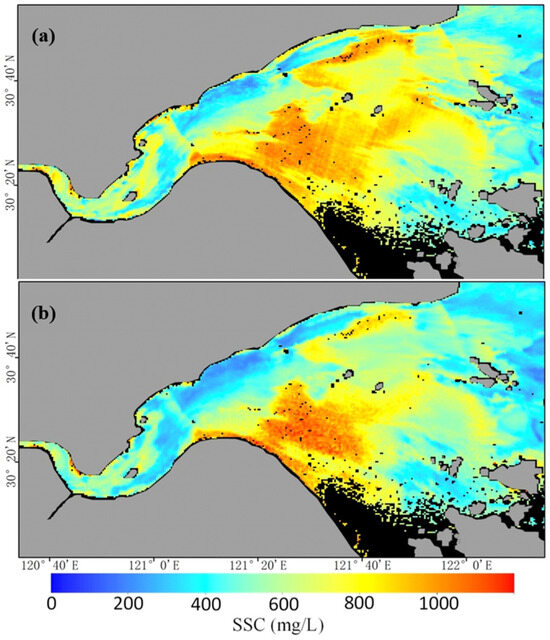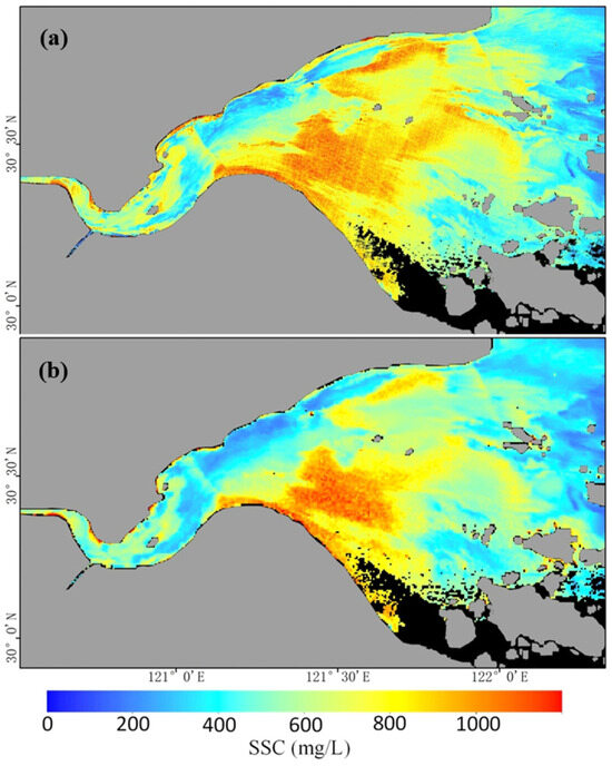Hangzhou Bay exhibits pronounced spatiotemporal variability in SSC, particularly in transition zones between high- and low-sediment waters. Field measurements conducted during high, medium, and low tides indicate that SSC can fluctuate dramatically within an hour [6].