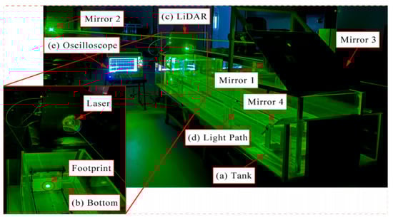 - Step 1: The LiDAR device is fixed on a stand 15 m high, and a laser transmitter is placed underwater to emit laser light.