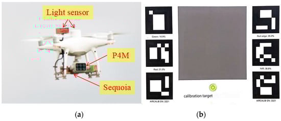 Owing to its cost-effectiveness and high efficiency, UAV technology has become increasingly prevalent in agricultural remote sensing [1,2,3,4]. UAVs, particularly those equipped with various optical sensors, are pivotal for tasks like classification, detection, and inversion, marking a new trend in contemporary research [5,6,7,8]. Predominantly, UAVs carry RGB and multispectral imaging systems, with the latter’s red edge and near-infrared reflectance being more extensively utilized in agriculture. Multispectral imaging, despite its larger bandwidths and discrete wavelengths that may lead to information loss compared to hyperspectral systems [9,10,11], offers advantages in terms of cost-effectiveness and ease of application [12,13]. Additionally, its compatibility with satellite remote sensing facilitates large-scale research validation [14]. Research has identified several key bands for vegetation, including green, red, red edge, and near-infrared, which are also the primary bands used in mainstream miniature multispectral sensors [15,16,17,18]. These bands suffice for most agricultural classification, detection, and inversion tasks.