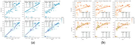 Vegetation index accuracy evaluation of different sensors. (a) NDVI; (b) CLre.