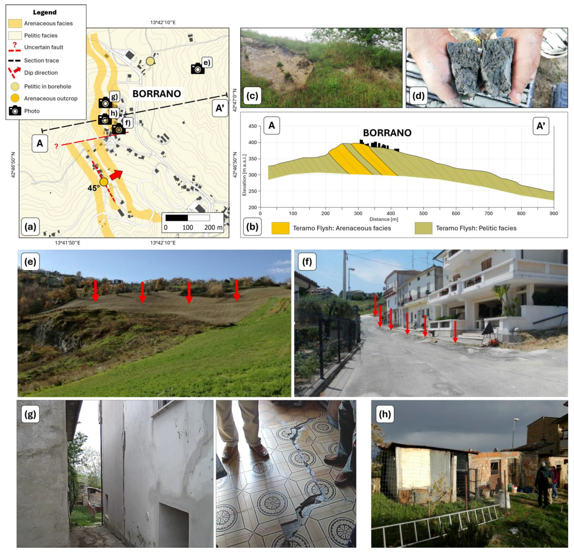 - Mangifesta, M.; Ciampi, P.; Giannini, L.M.; Esposito, C.; Scalella, G.; Sciarra, N. DsGSD numerical modelling supported by an integrated geognostic surveys: The case of the Borrano (Abruzzo Region—Central Italy). Geosciences 2025, 15, 134. [Google Scholar] [CrossRef]