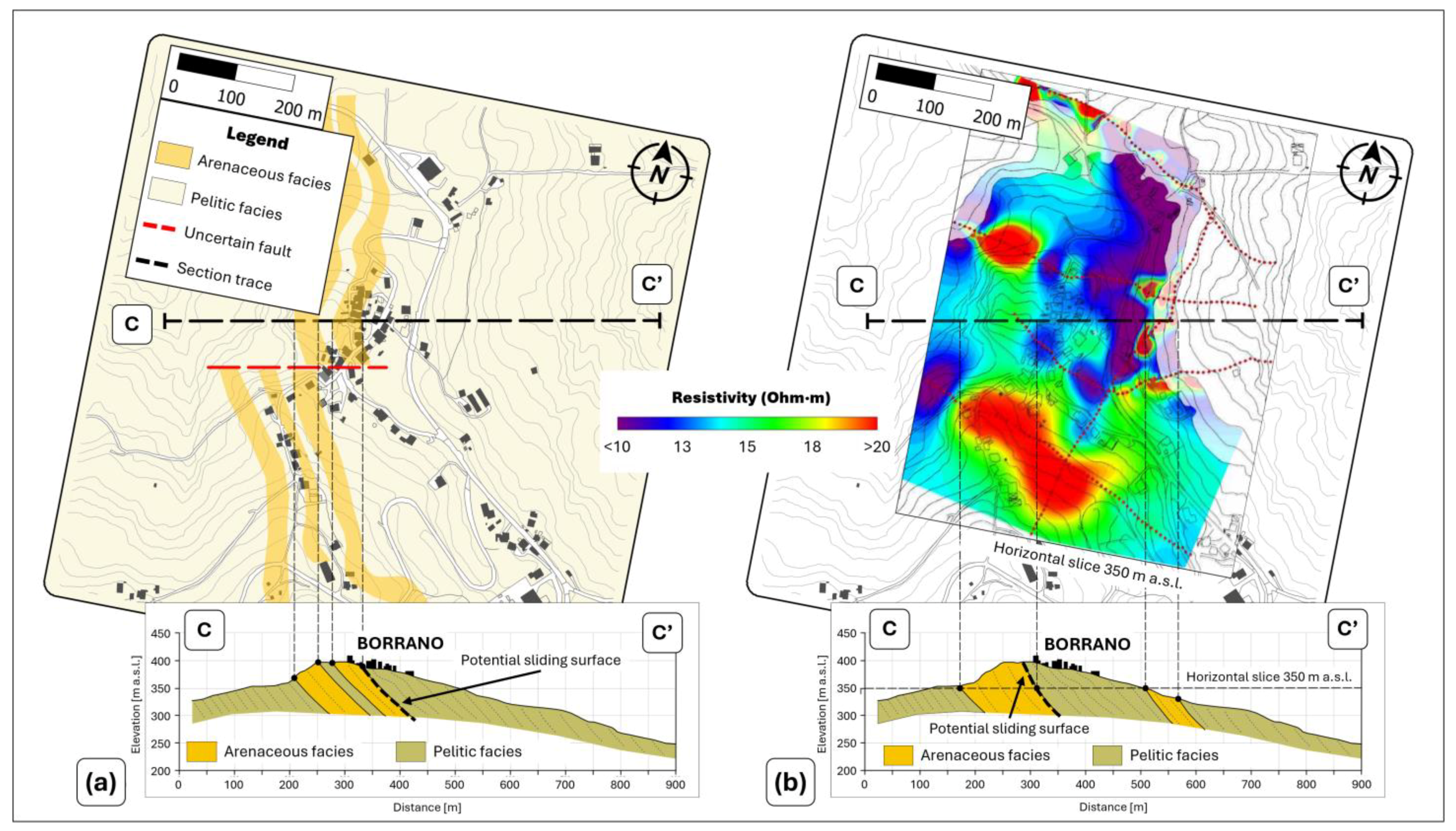 - Ciampi, P.; Giannini, L.M.; Cassiani, G.; Esposito, C.; Petrangeli, P.M. Geo-constrained clustering of resistivity data revealing the heterogeneous lithological architectures and the distinctive geoelectrical signature of shallow deposits. Eng. Geol. 2024, 337, 107589. [Google Scholar] [CrossRef]