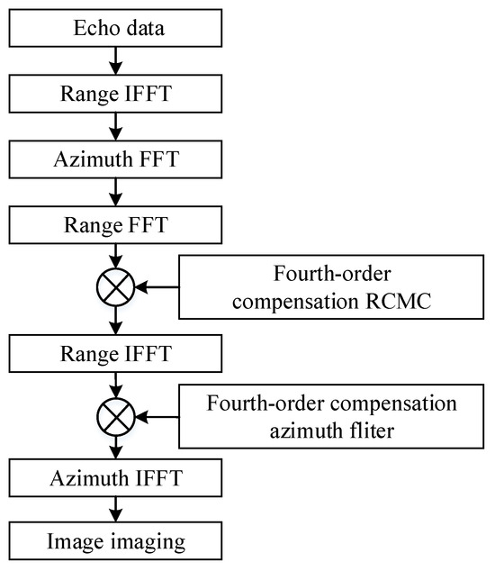 Equation (23) indicates that the range migration momentum is a function of . To achieve RCMC, inverse fast Fourier transform (IFFT) and linear phase multiplication [42] are used. The expression for the phase multiplier is