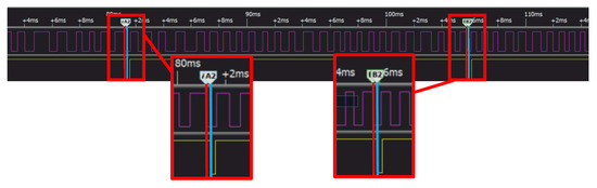 The angular encoder generates two sets of differential signals during rotation: A+ and A−, and B+ and B−. A differential-to-single-ended signal conversion module is used to invert the A− and B− signals and superimpose them onto the A+ and B+ phases, thereby enhancing the stability of the signal. The two output single-ended signals are denoted as A and B. The A and B signals are phase-shifted by 90 degrees relative to each other. By comparing whether the A phase is ahead of the B phase, it is able to determine whether the turntable is rotating clockwise or counterclockwise. The A and B signals are fed into the MCU microcontroller’s quadrature encoder pins to decode the signals. Using timers, interrupts, and other methods, the MCU can count the input pulses and identify the rotation direction, thereby sending the trigger signal to the radar when the turntable rotates to every angular position.