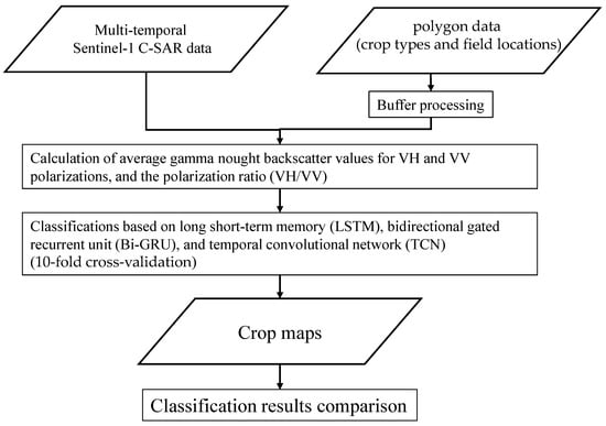 Recent advancements in computational power and machine learning have further enhanced the utility of SAR data for crop classification [20,21,22]. Traditional machine learning algorithms, such as random forest and support vector machines, have been successfully applied to classify crops using SAR features [20,21,23,24,25]. However, these models often fail to fully capture the temporal dynamics that characterize crop growth cycles. As a result, deep learning models—particularly those designed for sequential data—have gained attention for their ability to model complex temporal patterns.