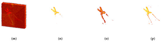 The result of the snip. (a–d) The 2DMP of MF, SP, GEO, and ASAR-MPC under 50% sampling. (e–h) The 3D results of MF, SP, GEO, and ASAR-MPC under 50% sampling. (i–l) The 2DMP of MF, SP, GEO, and ASAR-MPC under 25% sampling. (m–p) The 3D results of MF, SP, GEO, and ASAR-MPC under 25% sampling.