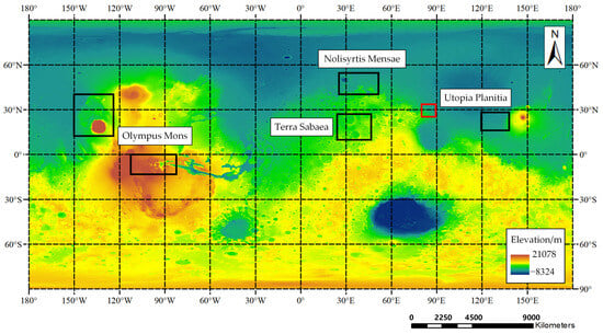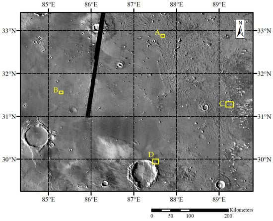 - Christensen, P.R.; Bandfield, J.L.; Hamilton, V.E.; Ruff, S.W.; Kieffer, H.H.; Titus, T.N.; Malin, M.C.; Morris, R.V.; Lane, M.D.; Clark, R.L.; et al. Mars Global Surveyor Thermal Emission Spectrometer Experiment: Investigation Description and Surface Science Results. J. Geophys. Res. Atmos. 2001, 106, 1370. [Google Scholar] [CrossRef]