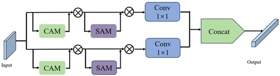Sanghyun proposed a CBAM [] model of the mechanism of convolutional attention. The CBAM model holds that a large amount of attention information exists within the channels in the feature maps of convolutional networks. In the channels, pixels in the feature maps contain attention information. However, in the previous attention mechanism, researchers only focused on the attention information existing in the channel, ignoring the large amount of attention resources in the space. CBAM demonstrates that joint consideration of both attention dimensions yields superior performance compared to isolated implementations, establishing a new baseline for attention-based feature enhancement.