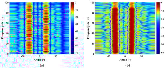 Figure 2. The normalized space–frequency pattern corresponding to the result in Figure 1a. (a) The result of the proposed method. (b) The result of CZT-WWD.