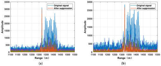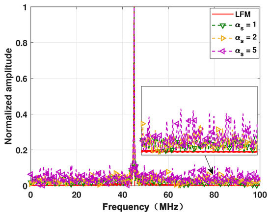 A transmit waveform with a large time–bandwidth product can enable the radar to achieve high range resolution, which has important applications in high-precision ranging and imaging fields [25,26]. The linear frequency modulation (LFM) signal is one of the most frequently used large time–bandwidth product signals in modern high-resolution radar systems, which also benefits from the de-chirp operation of the LFM signal, which can reduce the computation burden of pulse compression. Recently, a novel mainlobe jamming strategy named interrupted sampling repeater jamming (ISRJ) was proposed, which can not only raise the sidelobe level but also form false targets to mislead the radar [27]. In [28,29,30,31,32,33], based on the time–frequency (TF) analysis of a de-chirped signal, the anti-ISRJ strategy was proposed, and a frequency filter or TF filter was constructed to extract the real target echo. For the multiple target tracking situation, the ISRJ can serve as a self-defensive jammer to protect targets. However, because the TF properties of AWs are inconsistent with those of LFM, the above anti-ISRJ can not be directly applied to multi-beam scenarios.