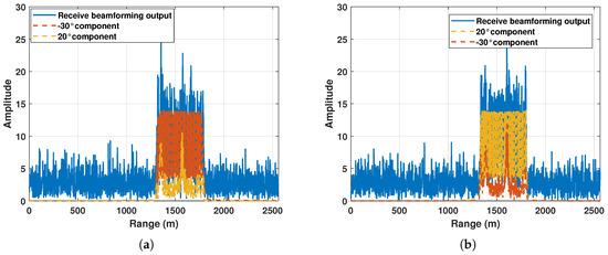 Figure 9. The receive beamforming output. (a) The receive beamforming output at 30 ° . (b) The receive beamforming output at 20°.