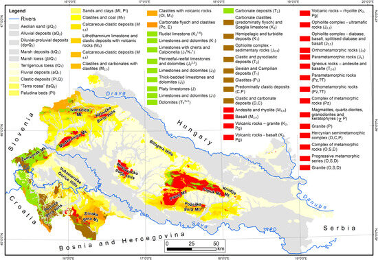 - HGI-CGS (Croatian Geological Survey). Geološka Karta Republike Hrvatske 1:300,000 [Geological Map of the Republic of Croatia 1:300,000]; HGI-CGS: Zagreb, Croatia, 2009. (In Croatian) [Google Scholar]