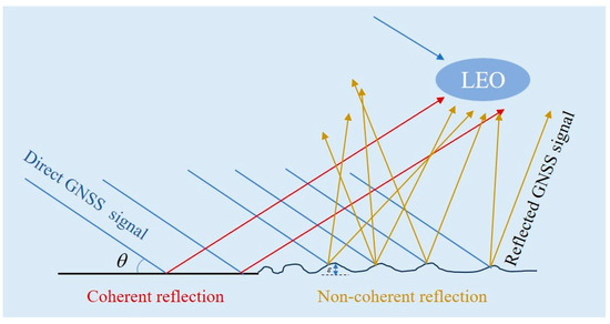 Figure 2 shows the difference between coherent and noncoherent GNSS signal reflections. As shown in the figure, coherent reflection occurs when the reflection surface is sufficiently smooth, while noncoherent reflection occurs when the roughness of the reflection surface is equal to or greater than the signal wavelength . The Rayleigh criterion provides rough guidance for distinguishing between smooth and rough surfaces with specific wavelengths and elevation angles of reflected signals [68], as follows: