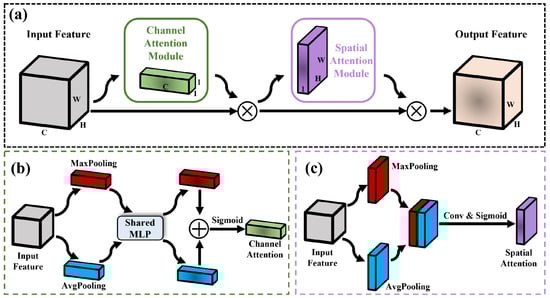 Architecture of CBAM block. (a) CBAM block; (b) channel attention module; (c) spatial attention module.