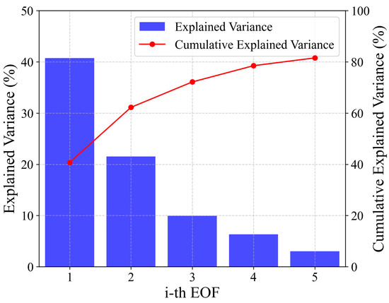 The Empirical Orthogonal Function (EOF) analysis, initially proposed by Pearson [17], is a method for extracting characteristic quantities from matrix analysis. Lorenz [18] introduced this method into the field of atmospheric sciences for the extraction and study of the temporal and spatial variation characteristics of meteorological element fields.