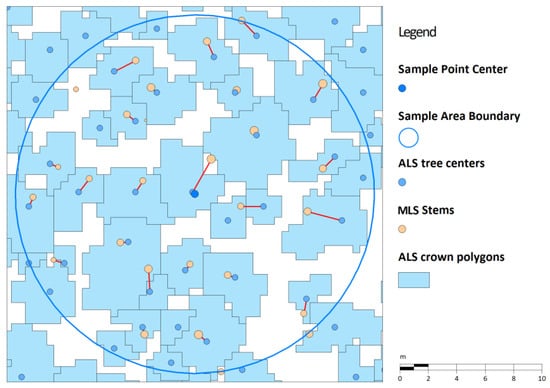 Comparison of MLS-derived stem positions and ALS-derived crown segments.