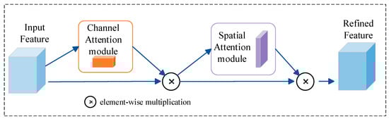 During the low-level feature fusion between the encoder and decoder, the CBAM attention mechanism is employed to enhance the extraction of valuable details, guiding the model to better focus on flame regions and boosting its overall performance. CBAM combines spatial and channel attention in a convolutional block [44]. Figure 5 shows its structure. After being processed by the convolutional layer, the output is first passed through the channel attention mechanism to apply weighting, and then refined by the spatial attention mechanism to produce the final output. The CBAM is introduced to enhance the features associated with the flame area. Background regions unrelated to fire are effectively suppressed in the attention feature map, unlike in the raw features extracted by the base network.