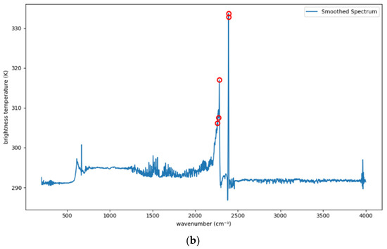 are set to 3 when detecting the peaks. Different vibration–rotation transition lines of the same component may produce adjacent peaks. When the combustion of the aero-engine is incomplete, new weak peaks may appear, and it is necessary to avoid merging the peaks of different components. We set