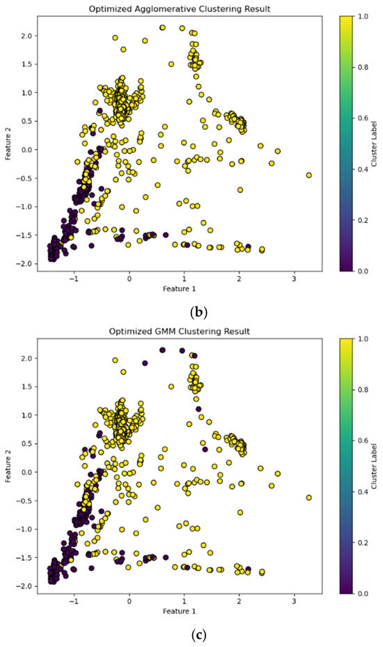 Table 2 shows the results of each clustering algorithm. It can be seen that GMM performed exceptionally well in these performance indicators, while divisive clustering and agglomerative clustering performed relatively poorly.