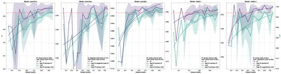 The choice of text prompt significantly influences OWLv2 performance, as the model relies on semantic alignment between visual features and language descriptions learned during pre-training [65]. Simple generic terms like “maize” or “plant” may activate broader visual concepts that include mature plants or other crop types, potentially reducing detection specificity. Conversely, descriptive phrases like “aerial view of maize seedlings” provide more contextual information that should theoretically improve alignment with our orthomosaic imagery [66]. However, if such specific descriptions were underrepresented in the pre-training data, they may perform worse than simpler terms [67]. To account for this variability, we evaluated all prompts systematically and report the results using the best-performing prompt for each model variant; Figure 9 shows the full distribution of performance across all tested prompts.