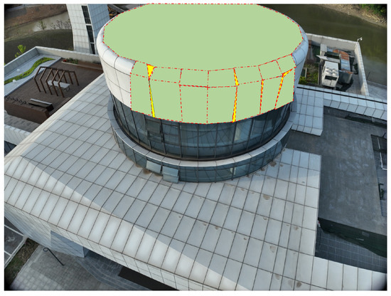 First, using plane extraction and segmentation methods, the triangular meshes belonging to the same plane are segmented into several polygons. Then, along the boundaries of these polygons, m polygonal geometric primitives are segmented from S; due to the sampling accuracy of the 3D surface mesh, the boundaries of the polygons are typically not smooth. By obtaining the line segments of the intersecting polygon boundaries, n line segment primitives can be obtained. An example of some geometric primitives in the geometry proxy is shown in Figure 2. Because real scenes often include small curved surfaces, smaller polygons are split into point primitives for processing.