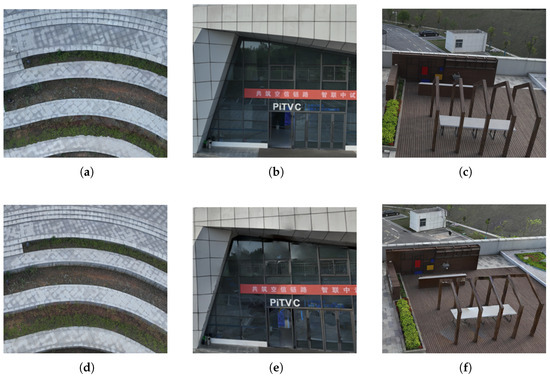 Comparison between virtual reference images and ground truth. (a) Reference image at position I. (b) Reference image at position II. (c) Reference image at position III. (d) Ground truth image at position I. (e) Ground truth image at position II. (f) Ground truth image at position III.
