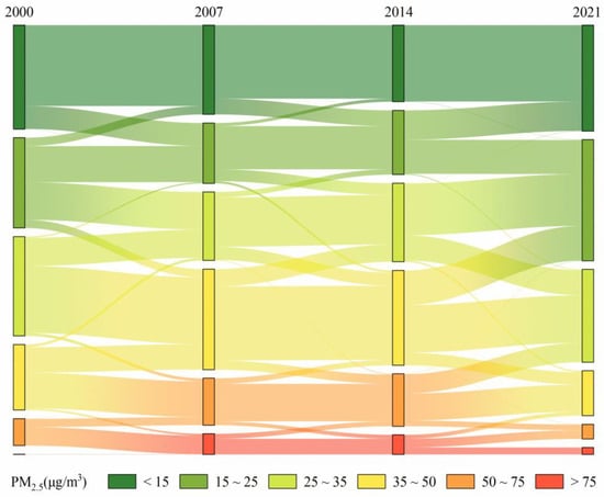 Sankey diagram of PM2.5 concentration type transfer matrix.
