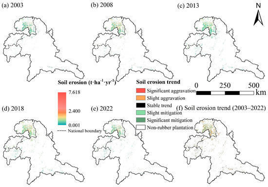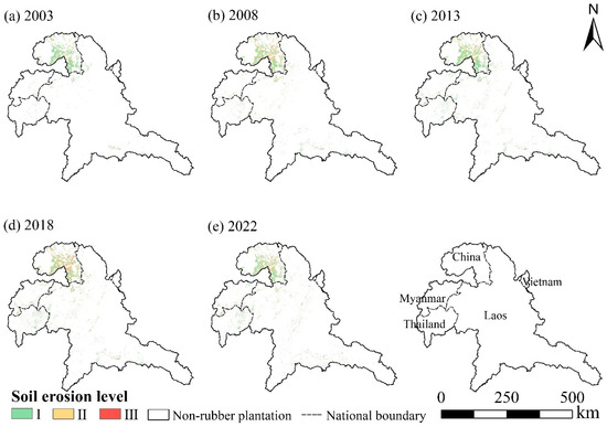 3.2.3. Analysis on the Expansion of Rubber Plantations and Changes in Their Soil Erosion Levels