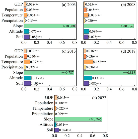 3.5. Analysis of Driving Factor Soil Erosion in Rubber Plantations
