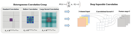 A Heterogeneous Convolution Group (HCG) is designed, comprising three parallel convolution kernels (Figure 2):