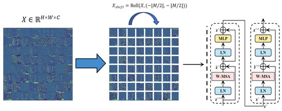 Given an input feature map , it is partitioned into windows, each containing tokens (Figure 3). The shifted-window mechanism enables cross-window interaction via cyclic shifting: