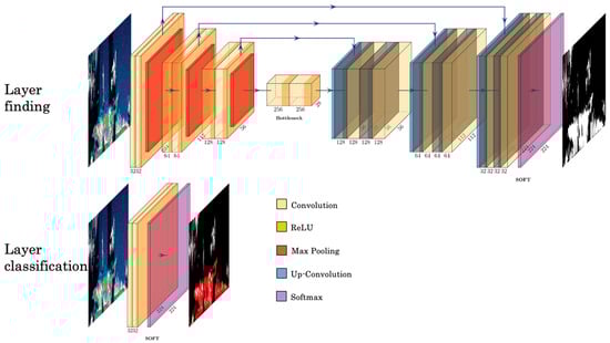 - Ronneberger, O.; Fischer, P.; Brox, T. U-net: Convolutional networks for biomedical image segmentation. In Proceedings of the Medical Image Computing and Computer-Assisted Intervention–MICCAI 2015: 18th International Conference, Munich, Germany, 5–9 October 2015; Proceedings, Part III 18. Springer International Publishing: Berlin/Heidelberg, Germany, 2015; pp. 234–241. [Google Scholar]