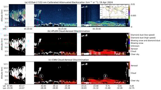 - Oladipo, B.; Gomes, J.; McGill, M.; Selmer, P. Leveraging deep learning as a new approach to layer detection and cloud–aerosol classification using ICESat-2 atmospheric data. Remote Sens. 2024, 16, 2344. [Google Scholar] [CrossRef]