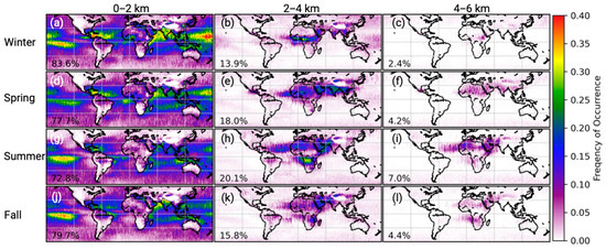 - Huang, L.; Jiang, J.H.; Tackett, J.L.; Su, H.; Fu, R. Seasonal and diurnal variations of aerosol extinction profile and type distribution from CALIPSO 5-year observations. J. Geophys. Res. Atmos. 2013, 118, 4572–4596. [Google Scholar] [CrossRef]