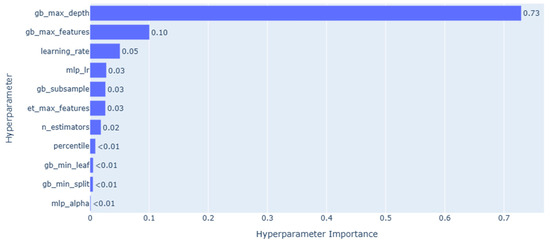 Importance of hyperparameters in Gradient Boosting model optimization: hyperparameter importance plot.