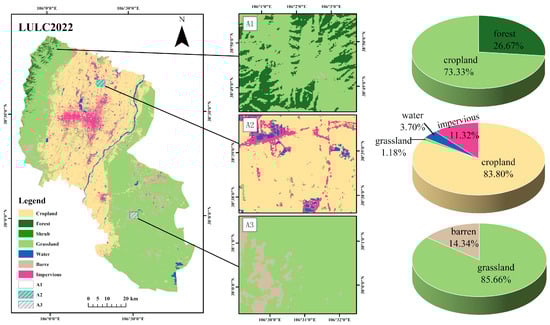 Yinchuan (38°08′N–39°23′N, 105°49′E–106°35′E) is located in the upper reaches of the Yellow River, bordered by the Helan Mountains to the west, adjacent to the Alxa League of Inner Mongolia, with Wuzhong City to the south and Shizuishan City to the north (Figure 1). The city covers a total area of 9025.38 km2, with elevations ranging from 982 to 3525 m. The terrain is divided into two major parts: mountainous regions and plains. The western and southern parts are relatively elevated, whereas the northern and eastern areas lie at lower altitudes. Yinchuan exhibits a typical temperate continental semi-arid climate, with an annual mean temperature of approximately 8.5 °C and a mean annual precipitation of around 200 mm, predominantly occurring during summer months. Land use in Yinchuan City is predominantly agricultural, and the area is rich in wetland resources. In this study, the zoning scheme defined in the Yinchuan Territorial Space Master Plan (2021–2035) was adopted to partition the study area for subsequent analysis (Figure 1).